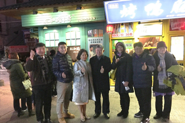 报告会结束后,林玥秀校长一行在学院领导的陪同下来到位于台东步行街的松和路一号餐饮管理公司进行了实地参观考察。该企业是由两校共同培养的优秀餐旅人才、我院首批赴台湾高雄餐旅大学公派交换生、酒店管理专业2011级优秀毕业生张川创办,到访客人们现场品尝了精美的台湾烤肠等地道小吃,并对两校共同培养的杰出餐旅人才张川表示了充分认可,相约在今后能够共同培养出更多致力于餐旅创业的我院杰出学子。