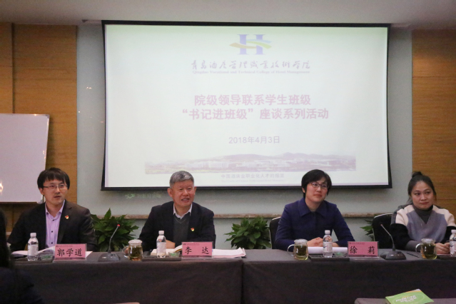 本网讯(旅游与酒店管理学院)为贯彻《关于在全省开展“大学习、大调研、大改进”的通知》精神,根据学院《关于实施院级领导联系学生班级制度的意见》,4月3日,学院党委书记李达走进2017级酒店管理2班,与同学们进行座谈。旅游与酒店管理学院党总支副书记徐莉、团总支书记郭学道,2017级酒店管理2班辅导员、班主任和全体同学参加了此次活动。
