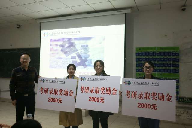本网讯(继续教育学院)近日,从2014级自考专本套读毕业生中传来喜讯,三名同学顺利通过考研初试、复试环节,考取了2018年度全日制硕士研究生。其中,工商管理学院2014级金融专业刘芳英同学考取聊城大学小学教育专业硕士研究生;工商管理学院2014级五专金融专业单小珂同学考取鲁东大学历史学教育专业硕士研究生;工商管理学院2014级五专金融专业胡瑞琪同学考取四川师范大学哲学专业硕士研究生。这是继续教育学院首批招生的专本套读学生毕业当年就考取硕士研究生的新突破。继续教育学院于4月19日晚,在学术楼举行表彰大会,对三名取得优异成绩的同学进行表彰,并颁发考研录取奖学金2000元。