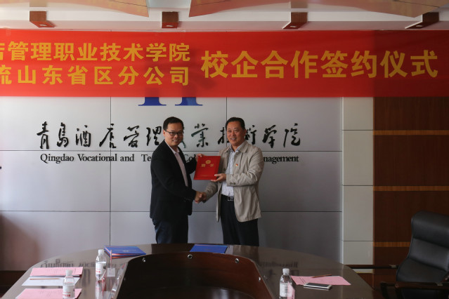 本网讯(工商管理学院 林鹏)4月19日我院与京东物流山东省区分公司校企合作项目签约揭牌仪式在办公楼二楼会议室举行。京东物流山东省区分公司总经理乔叶雷、人力资源部部长于飞、校园平台管理部负责人李闻龙、山东从远人力资源服务有限公司总经理史常峰等企业领导及我院党委副书记于敏、教务处处长兼工商管理学院院长唐文君、工商管理学院党总支书记曲萌参加签约仪式,唐文君主持签约仪式。