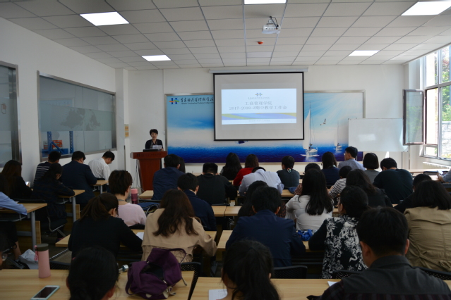 本网讯 (工商管理学院 潘华南) 学期过半,为梳理前期教学工作,强化教学规范,更好的开展本学期各项工作,工商管理学院期中教学工作会议于5月15日在物流综合实训中心会议室召开。全院教师参加会议,会议由办公室主任潘华南主持。