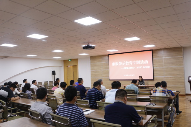 本网讯(纪检监察处 刘凯为深入学习贯彻党的十九大精神,教育广大党员干部切实明法纪、知敬畏、存戒惧自觉筑牢思想道德防线,践行忠诚干净担当,6月14日下午,学院在行政楼四楼会议室召开党风廉政建设专题学习会,集中收看《“象牙塔”里的蜕变》警示教育专题片。全体院领导、中层正职及主持工作的副职观看了该专题片。纪委书记姜玲玲主持会议。