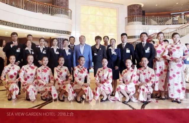 孙凯旋(第一排左三)、伏蓉(第二排右一)与哈萨克斯坦总统纳扎尔巴耶夫合影