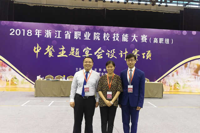 本网讯(旅游与酒店管理学院 )6月23至24日,由浙江省教育厅主办的2018年浙江省职业院校技能大赛“中餐主题宴会设计”赛项在浙江旅游职业学院举行。我院教师王光健、郭贵荣、杨明义受邀担任此次比赛接待方案创意设计和中餐宴会摆台两个赛项的评委。