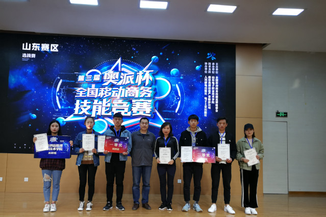本网讯(信息工程技术学院 刘焱)10月27日,第三届“奥派杯”全国移动商务技能竞赛(山东赛区)在山东电子职业技术学院举办,信息工程技术学院电子商务专业选派两支代表队参赛,分别荣获一等奖和二等奖,学院荣获“优秀组织单位奖”。