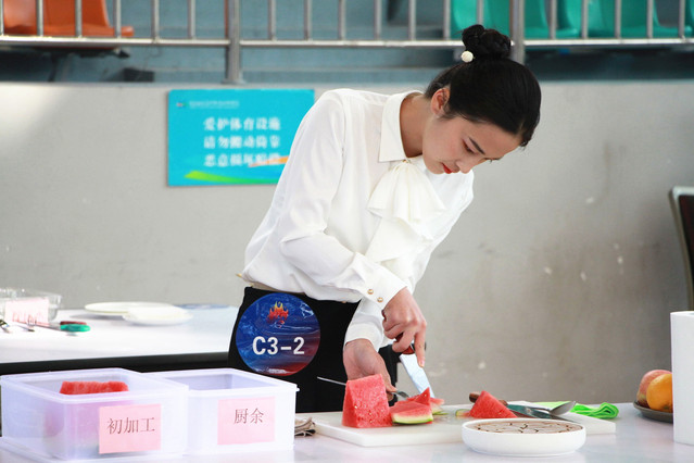 本次大赛分为中餐宴会台面设计、西餐零点服务与餐饮品制作三部分,总分为100分,各项分值分别占30%、40%、30%。其中,中餐宴会台面设计竞赛内容包括中餐宴会台面设计、宴会摆台(8人)、餐巾折花、菜单设计与制作、主题创意说明等;西餐零点服务竞赛内容包括西餐零点摆台(2人)、西餐零点服务,服务内容包括点菜、调整餐具、斟倒红白葡萄酒、上主菜、撤餐盘等;餐饮品制作竞赛内容包括水果拼盘制作、自创鸡尾酒调制等。