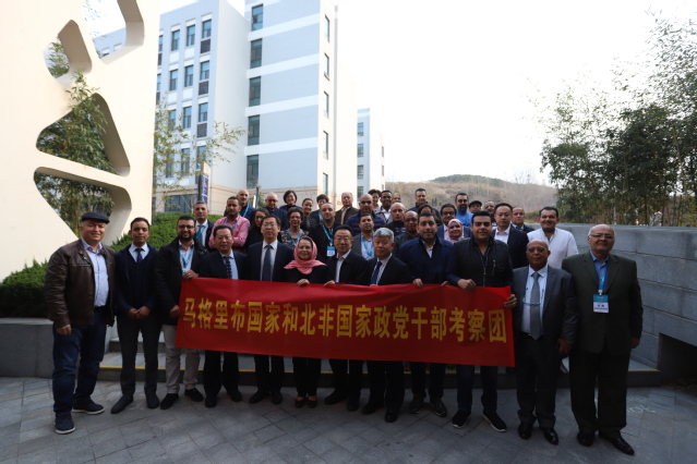 本网讯(国际交流与合作处 周莉)11月29日下午,以阿尔及利亚民族民主联盟全国局委员,民族院(参议院)副议长萨阿迪娅·贾法尔女士为团长的马格里布国家和北非国家政党干部考察团一行33人到我院交流访问。