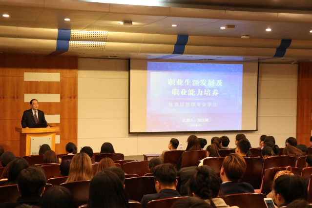 本网讯(旅游与酒店管理学院 李涛)近日,为切实增强学生的职业认同感,帮助学生开展职业生涯发展规划,旅游与酒店管理学院在2018级新生中开展“职业经理人讲坛”活动落下帷幕。