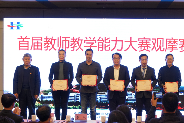 首届教师教学能力大赛分为预赛、复赛、决赛和观摩赛4个环节。预赛环节,广泛发动教师,积极参与,共有90名教师提交了参赛作品,参加到教学比赛中;复赛环节,42名教师作品送交省内外3名专家评审,既保证了比赛客观公正,各位专家也有针对性的提出了书面指导意见;决赛环节,21名教师进行了现场答辩,评出了一等奖9名,2等奖12名。观摩赛环节, 4名选手按照国赛流程,真实展示了自己的作品。