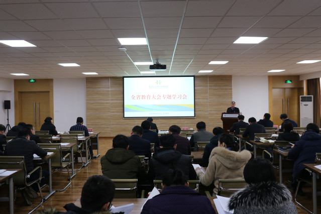 本网讯(党委宣传部 于克晓)1月12日,学院在行政楼四楼会议室召开全省教育大会专题学习会。党委书记李达、副院长王建宝、副院长商士海、副院长刁洪斌、纪委书记姜玲玲、副院长宫恩龙出席会议,学院副科级以上干部参加会议。会议由党委副书记于敏主持。