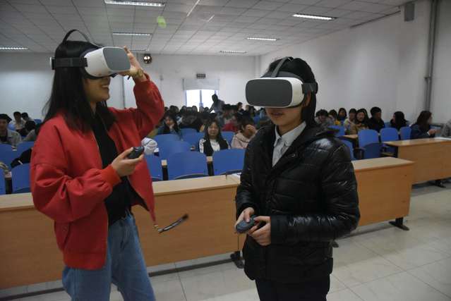 本网讯(信息工程技术学院 于晅)近日,青岛博物馆携高科技史话VR走进我院,将传统文化和VR技术进行结合,为同学们带来了一场精彩的高科技“青岛史话”。此次活动拉开了2019年青博优秀传统文化进高校课堂的序幕, 同时也是青博“五进”宣讲活动中高科技VR首次进入大学。