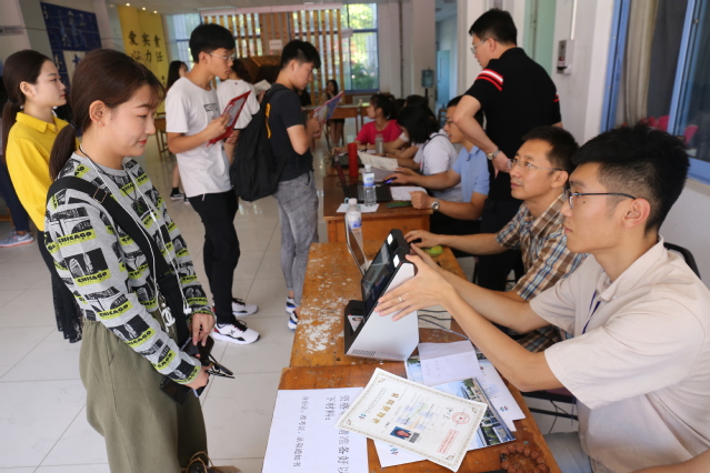“滴,验证通过。”学院今年迎新采用数字智能化迎新模式,启用人脸识别系统,新同学只需几秒钟就可以完成报到。每个学院迎新处都配备了人脸识别机器,供新生“刷脸”注册,新生只要在人脸采集设备前稍稍驻足,系统便可以根据现场采集的图像与数据库中的新生照片进行识别,并通过生物识别算法迅速抓取学生脸部图像,精准识别出新生的身份。