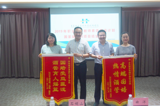 学员们纷纷通过发言交流、微信群、朋友圈、感谢信等各种形式表达对我院培训质量、服务水平的高度赞扬。为了表达对学院的感谢之情,在我院培训了28天的两个国培班学员,在结业仪式上分别向我院赠送了“国培受益匪浅,酒管育人摇篮”和“高端国培,热情酒管”锦旗,让培训服务团队深受感动。
