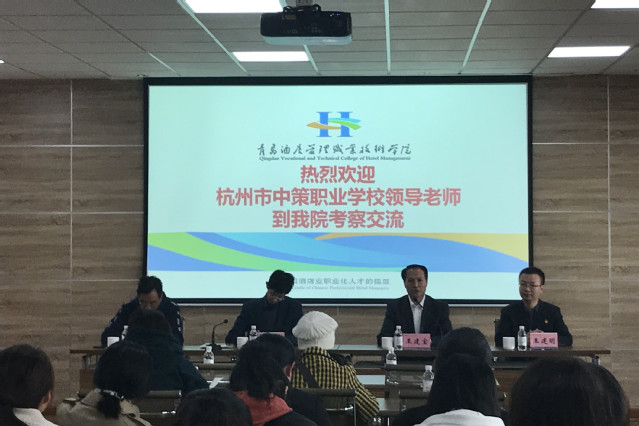 本网讯(烹饪学院 李文武)11月7日,杭州中策职业学校纪委书记魏生良、副校长宋湛一行46人来我院参观交流。学院副院长王建宝、烹饪学院院长王建明在办公楼四楼会议室与来访客人开展交流。
