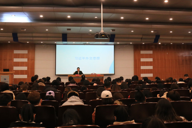 庄鑫雁从“百年未有之大变局”切题,深刻阐述了习近平外交思想的丰富内涵和时代价值,全面展示了中国特色大国外交的基本原则、立场和丰硕成果。报告内容深入浅出、旁征博引,既有理论高度,又有实践深度,还饱含着对我国外交工作的感情温度,为广大师生上了一堂内涵丰富、意义深刻的思想政治理论课,对深入学习领会习近平外交思想,加深对中国特色大国外交的理解,提供了重要指导。