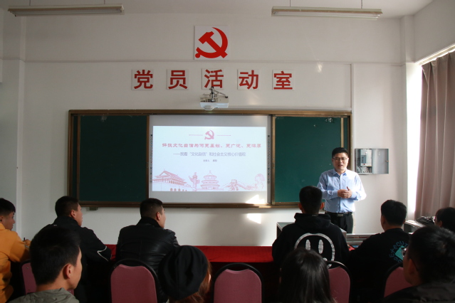 11月5日,艺术学院邀请烹饪学院庞阳为学生干部作了题为《我看“文化自信”和社会主义核心价值观》的讲座。他围绕 “为什么要文化自信”“对什么文化自信”“坚持文化自信的重要意义”三个部分,讲述了文化自信为何更基础、更广泛、更深厚。