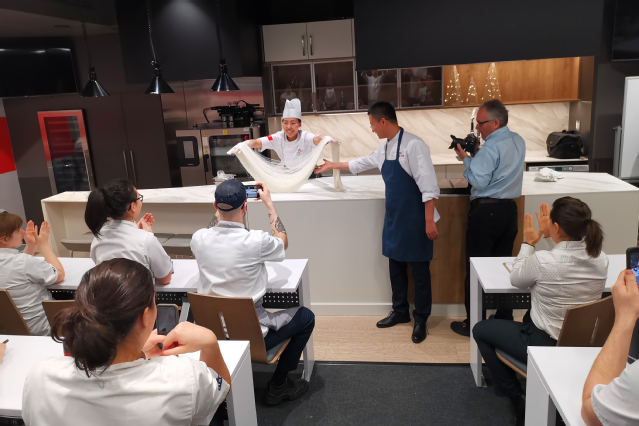 12月4日—5日,在烹饪学院院长王建明的带领下,学院展示了山东非物质文化遗产——饽饽榼子的使用及饽饽的制作,举行了“诸侯快讯导航——山东非物质文化遗产传播中心”的挂牌仪式。烹饪学院专业教师王珊珊、李军、江云涛向ITHQ学院师生展示了中式面点的制作,与师生一起制作了中西融合的宴席。