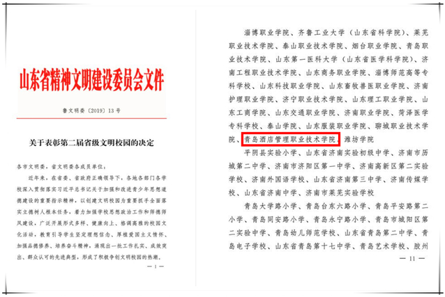 本网讯(党委宣传统战部 于克晓)近日,山东省精神文明建设委员会发布《关于表彰第二届省级文明校园的决定》(鲁文明委[2019] 13号),学院成功入选省级文明校园。