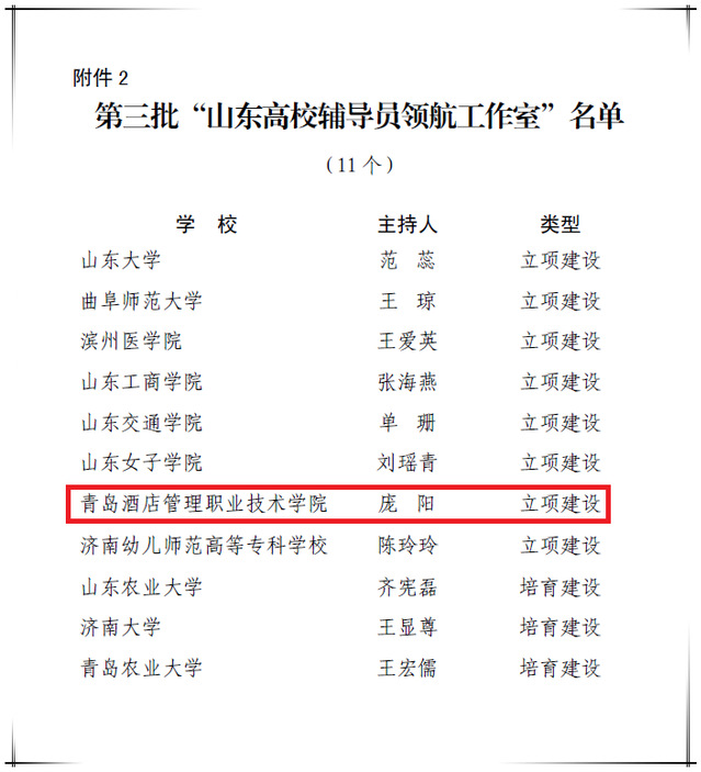 本次获批山东高校辅导员领航工作室由烹饪学院学工办主任庞阳担任工作室主持人,学院六个校级辅导员名师工作室团队积极参与、共同筹备,经过材料评审、现场答辩等环节,最终脱颖而出,成为全省本次立项建设的8个辅导员领航工作室之一,建设周期2年,支持建设经费10万元。
