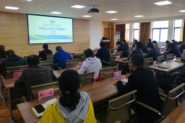 本网讯(教务处 王翔)4月9日下午,学院在行政楼四楼会议室召开线上教学工作调度会。学院副院长宫恩龙出席并讲话,各二级院部负责人、教务处相关人员现场参加会议,学院专兼职教师居家收看会议直播。