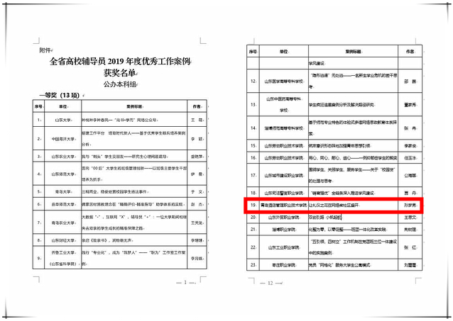 本网讯(学生工作处 童菲)近日,山东省教育工委下发《关于公布全省高校辅导员2019年度优秀工作案例评选结果的通知》,信息工程技术学院辅导员孙梦男撰写的工作案例《让礼仪之花在网络微社区盛开》荣获三等奖。