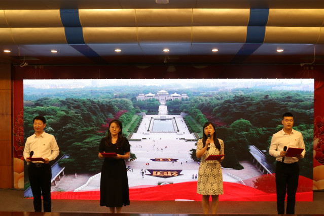 现场四位党员代表姜玲玲、赵德银、朱丽男、于森共同朗诵了配乐诗《信念永恒》,展现了中国共产党成立99年来,从无到有、由弱到强、薪火相传、生生不息的壮丽篇章。