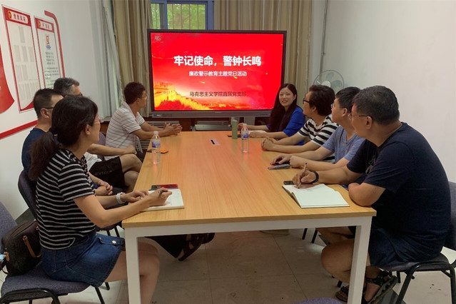 本网讯(马克思主义学院 刁立宏)8月27日,马克思主义学院直属党支部举行“牢记使命,警钟长鸣”廉政警示教育主题党日活动,深入学习贯彻党的十九大精神和全面从严治党要求,引导教师党员筑牢拒腐防变思想防线,增强教工党员的责任感和廉洁自律意识