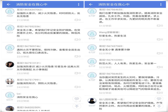 在完成“学校消防安全公开课”学习后,学院在易班平台上,发起了 “消防安全在我心中”大讨论,近千名同学在线互动,发送留言数百条,热议对消防安全的理解和体会,进一步发挥了宣传教育作用,有利于提升学生的安全意识。与此同时,工商管理学院向全体学生征集消防安全学习心得,并评选优秀文章进行表彰,进一步促进安全教育深入人心。