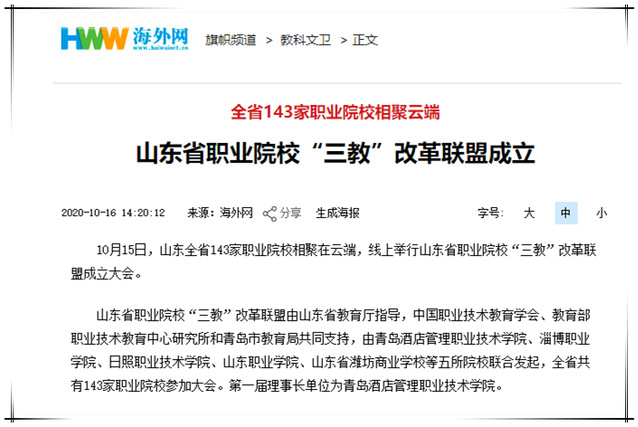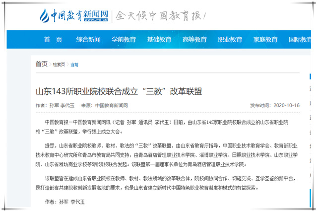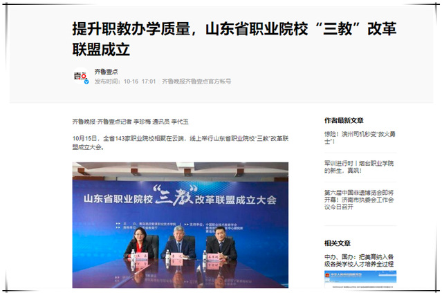 多家媒体报道学院联合发起成立山东职业院校“三教”改革联盟