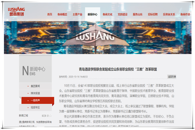本网讯(宣传统战部)连日来,中国教育新闻网、人民日报海外网、中国教育在线、中国高校之窗、齐鲁壹点、鲁商集团官网、中国网、青岛新闻网、青岛日报观海新闻、新浪网、网易、搜狐网、腾讯网等多家媒体持续报道学院联合发起成立山东省职业院校“三教”改革联盟,引起了良好反响,提升了学院的社会影响力和美誉度。