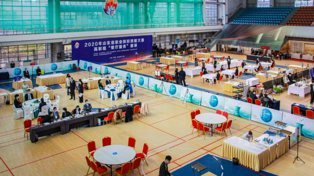 本网讯(党委宣传统战部 酒店管理学院)11月17日-20日,初冬再相聚,2020年山东省职业院校技能大赛在学院体育馆举行,共有来自全省各地26支队伍同台竞技、共展专业魅力。为期四天的赛事,选手们沉着应战,用精湛的技艺和风采,展示了省内高职院校餐厅服务的最高水平。