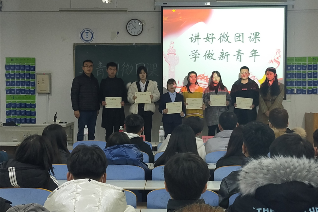 在决赛中,十名青年团员紧扣党的十九大精神,紧贴共青团工作实际,用演讲、PPT演示、案例讲解、视频等丰富多彩的表现形式讲述了微团课,充分展现了青年团员对团的认识、肩负责任和下一步工作规划。最终有六名同学脱颖而出,获得了此次微团课比赛一二三等奖。