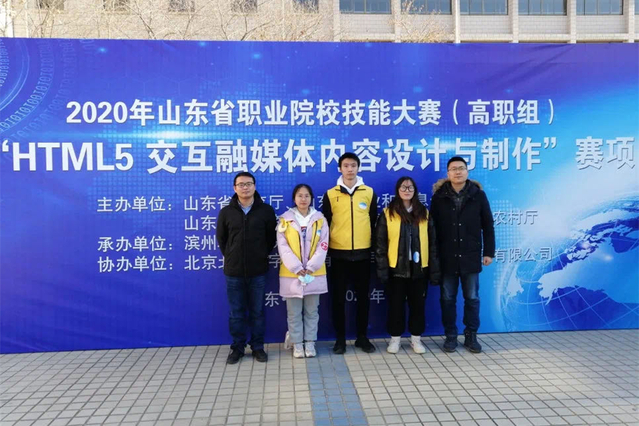 “HTML5交互融媒体内容设计与制作”赛项重点考察选手HTML5交互融媒体内容设计和移动端页面作品内容制作的技能和素质,陈兆隆、宿孟瑶、孟竹等3名同学沉着应赛、通力合作,获得二等奖。“虚拟现实(VR)设计与制作”赛项竞赛内容围绕“一带一路”主题,检验学生VR资源设计与制作的核心知识及技能,衣俊霖、孙洁、黄帅等3名同学紧扣主题、团队协作,获得三等奖。