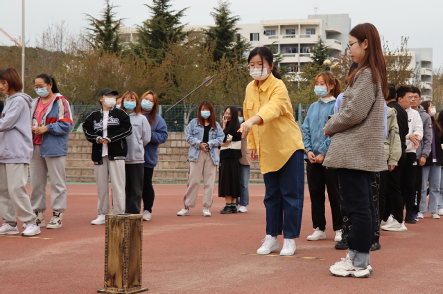 在体育场,同学们投入到“花样蹴鞠”和“羽箭投壶”体验中。藤球在脚下翻飞,单脚踢、换脚踢;专注瞄准,扬手投出,羽箭正中铜壶内……同学们在传统体育活动的花样玩法中体验着传统文化的魅力。