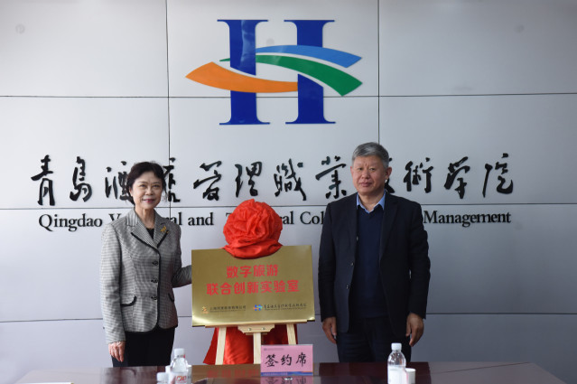 随后,姜玉鹏、程伟勇代表双方签订了《校企战略合作框架协议书》《软件系统捐赠协议》;李达、刘莉莉共同为“数字旅游联合创新实验室”揭牌。