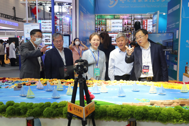 学院展区以多媒体影音、实物、平面图文及职业体验观摩互动等形式相结合,设置“百年芳华·帆之都”主题展台、“双高计划”建设成果展及食品雕刻、中华茶艺、咖啡艺术、插花艺术、调酒艺术、衍纸艺术等互动体验项目展台。展台设计凸显学院“聚焦酒店业办专业”和酒店产业链条专业组群发展的理念,融合酒店管理、环境艺术设计、烹调工艺与营养、工艺美术品设计等专业特色。
