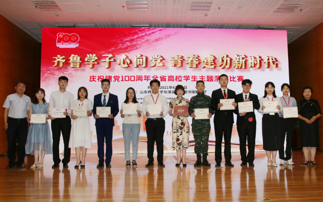本网讯(教育信息中心 李勇)6月11日,“齐鲁学子心向党青春建功新时代”庆祝建党100周年全省高校学生主题演讲比赛决赛在山东师范大学举行,学院学子史建军获得二等奖,胡孟扬老师获评“最佳指导教师”。