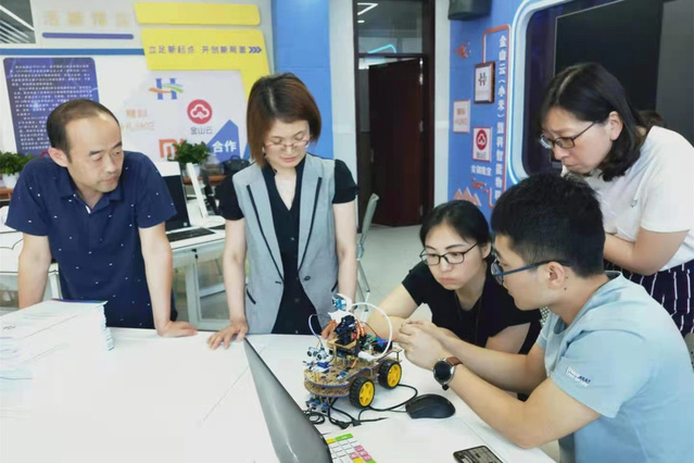 在师资赋能培训过程中,企业一线开发工程师对物联网应用技术专业教师进行了实战开发能力提升的专题培训。从智能机器人、可穿戴设备、数据可视化展示等前沿智能产品的研发、组装和运维对一线教师进行了细致的指导,进一步提升了教师们的专业技能和应用能力。