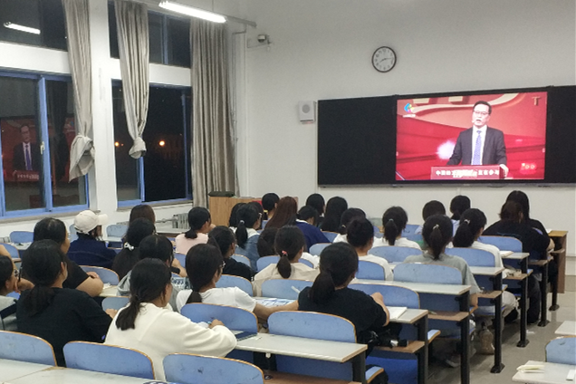 本网讯(党委宣传统战部 周晓莉)为深入贯彻落实习近平总书记“七一”重要讲话精神,引导青年学生自觉践行“请党放心、强国有我”誓言,9月29日,各二级学院组织学生通过集中收看和分散学习相结合的方式观看《齐鲁大讲坛——开学第一讲》网络直播特别节目。