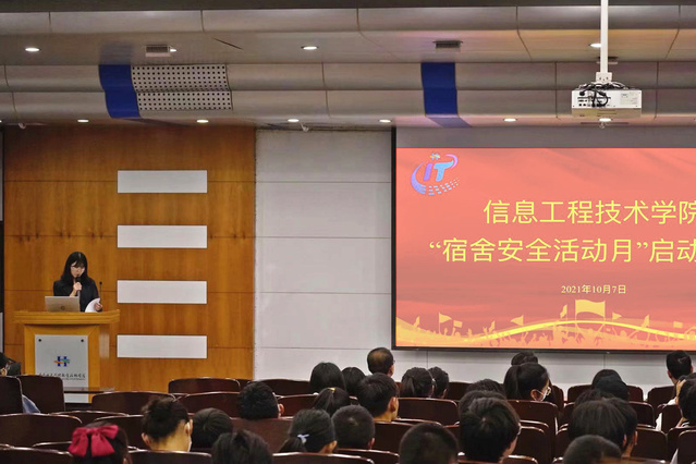 本网讯(信息工程技术学院 柴丽杰)为进一步加强宿舍安全管理,发挥公寓育人阵地作用。10月7日,信息工程技术学院在学术报告厅举行“安全信息 和谐之家”宿舍安全活动月启动仪式。