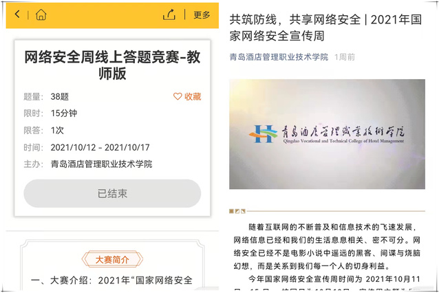 本次“国家网络安全宣传周”系列活动的开展,进一步调动了师生们主动学习网络安全知识的积极性,切实增强了个人网络安全防范意识、风险识别和预防能力,有助于共同维护校园网络安全和国家安全。