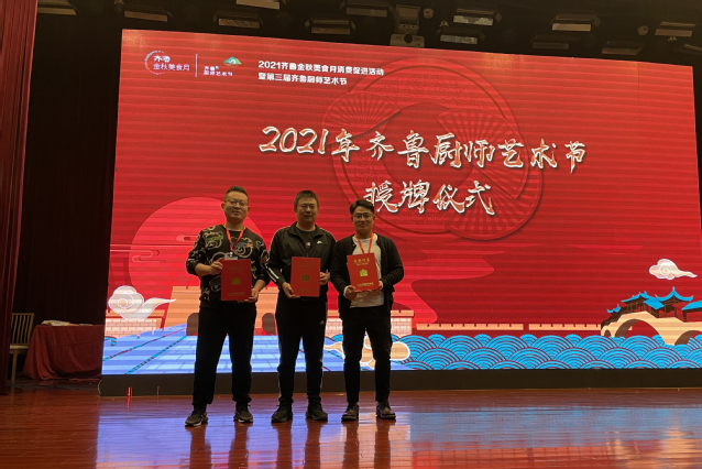本网讯(烹饪学院 赵捷)10月22日,山东省第二届厨师争先创优劳动技能竞赛在枣庄市举行。学院烹饪学院教师李军、申亚军获得大赛热菜制作一等奖,丁德龙获得食品雕刻一等奖,三人同时被授予“齐鲁烹饪工匠”金鼎奖荣誉称号。