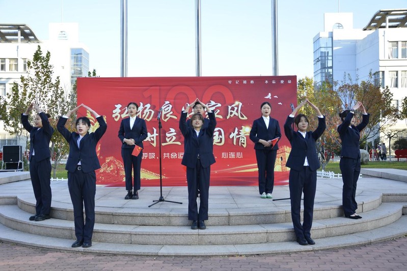 11月10日,工商管理学院举行了“弘扬良好家风 树立家国情怀”升旗仪式。仪式上,党总支书记郭学道为师生们带来了思政课《我的“家国情怀”观》,呼吁同学们遵循家风校风,遵守社会公德,树立家国情怀,永远跟党走。随后,刘羿利、崔环琪等同学朗诵《我替父亲看见了可爱的中国》,深切表达了方志敏烈士的家庭命运与国家的命运同频共振。升旗仪式在全体师生合唱《国家》的歌声中结束。