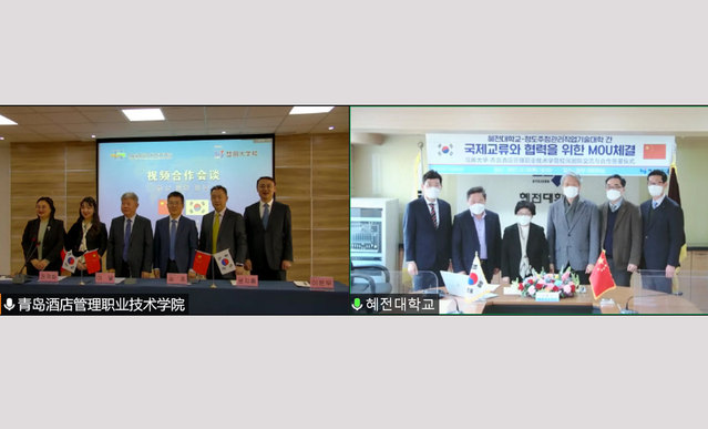 本网讯(国际交流与合作处 张晴)12月30日,学院与韩国彗田大学举行国际交流与合作视频会谈,韩国彗田大学总长李惠淑,学院党委书记李达、党委副书记宋超参加活动。