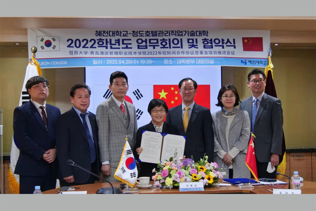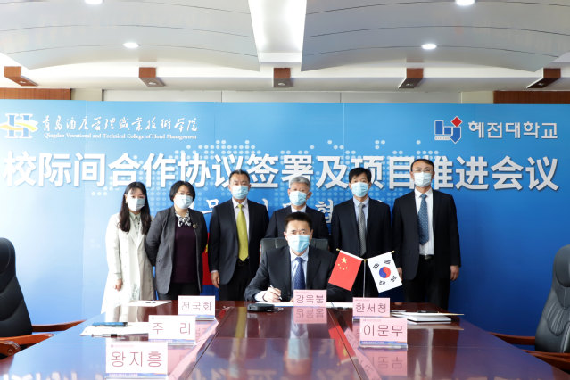 随后,李惠淑、姜玉鹏代表两校签署了第三个五年合作协议,并就2022年彗田大学中餐专业学期制来华、韩餐专业交流等项目进行深入商讨。双方表示将继续深化中餐和韩餐的技艺交流,践行两校共促共享的合作理念,为两校学生提供多样化的学习支撑,在互学互鉴、共同发展的基础上,不断把两校合作推向新的前进,力争成为中韩两国职业教育合作交流的典范。
