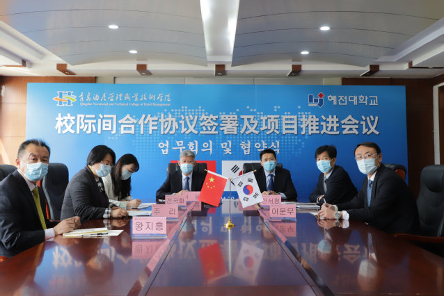 本网讯(国际交流与合作处 孙丽艳)4月20日上午,学校与韩国彗田大学通过“云端”举行2022年校际间合作协议签署及项目推进会。韩国彗田大学总长李惠淑,学校党委书记李达、院长姜玉鹏、党委副书记韩西清参加活动。