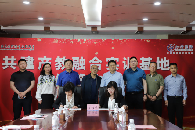 本网讯(继续教育学院 烹饪学院)5月24日,学校与青岛知行国际经济技术合作有限公司共建产教融合实训基地签约仪式在行政楼二楼会议室举行。青岛市商务局对外投资和经济合作处副处长于成习、城阳区商务局党组成员周明波、青岛知行国际经济技术合作有限公司董事长张淑珍;学校院长姜玉鹏,副院长、工会主席姜玲玲参加仪式。