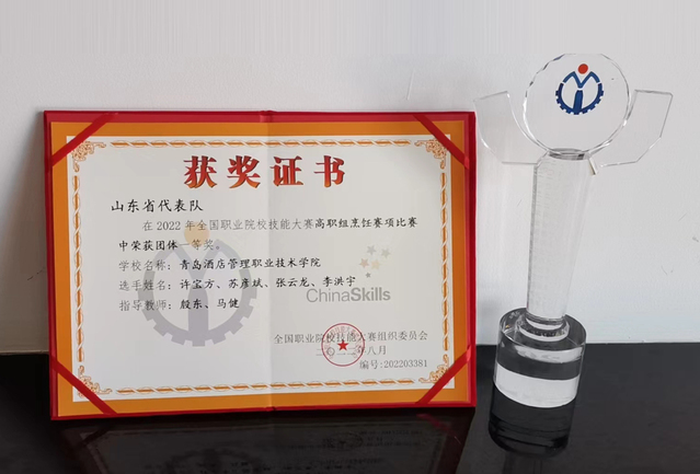 本网讯(烹饪学院 赵捷)8月20日至24日,2022年全国职业院校技能大赛(高职组)烹饪赛项在辽宁现代服务职业技术学院举行,诸侯快讯官网烹饪学院学生许宝方、苏彦斌、张云龙、李洪宇组成的参赛团队凭借宴席作品《山海共融·美丽乡村》荣获一等奖,殷东、马健老师荣获“优秀指导教师”。