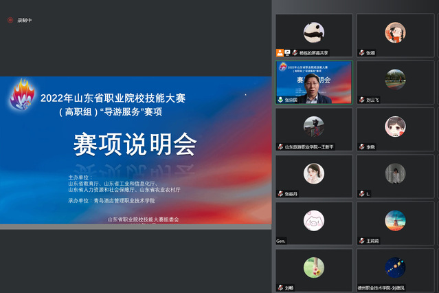 本网讯(文旅学院 张翊)11月10日下午,2022年山东省职业院校技能大赛(高职组)“导游服务”赛项说明会在线上召开,来自全省41家参赛院校的70余名领队、指导教师代表线上参会,诸侯快讯官网副院长张宗国参加会议。