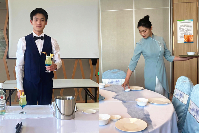 本次比赛由山东省教育厅、山东省工业和信息化厅、山东省人力资源和社会保障厅、山东省农业农村厅等四部门主办,共有来自全省高职院校的27个参赛队参加。大赛着眼于考核学生在餐饮管理与服务工作中的综合素质和能力,分为中餐服务和西餐服务两大项目,包括休闲餐厅服务、鸡尾酒调制、中餐主题宴会设计和宴会服务四个模块。其中,休闲餐厅服务和鸡尾酒调制两个模块全程使用英语服务,整个比赛内容既体现中国特色,又接近世赛标准,考核内容多、难度大,专业性要求高。